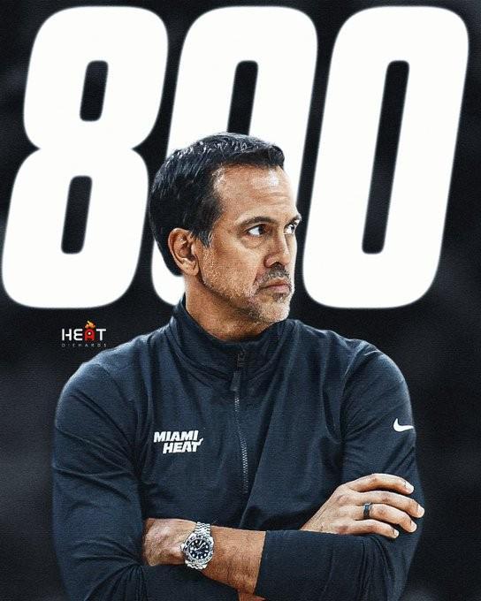 本場比賽取勝后,熱火隊主帥埃里克-斯波爾斯特拉突破了執(zhí)教生涯的800勝場大關(guān),他也成為了NBA歷史上第17位達(dá)成該成就的主帥。