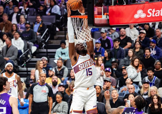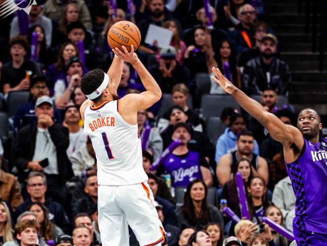 中段太陽(yáng)這邊奧尼爾和布耶連中超遠(yuǎn)三分,德羅贊和阿丘瓦維持懸念。最后3分鐘,奧尼爾三分球殺死比賽懸念。最終太陽(yáng)112-100擊敗國(guó)王。太陽(yáng)數(shù)據(jù),布克22中6,拿到19分7籃板6助攻,吉萊斯皮21分9助攻,馬威21分17籃板4助攻,布魯克斯13分3籃板,布耶11分,奧尼爾8分4籃板4助攻3搶斷。